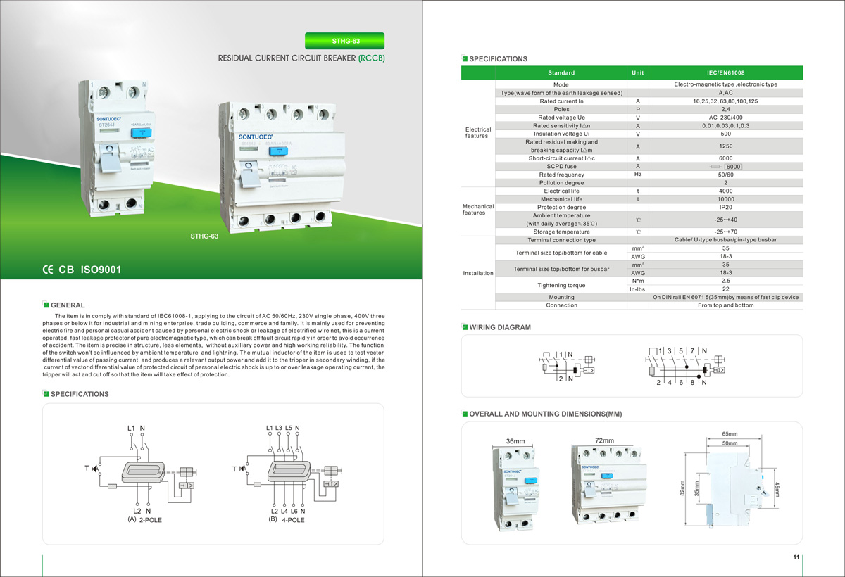 SONTUOEC යනු විවිධ කුඩා විදුලි උපකරණ නිෂ්පාදනය සඳහා විශේෂිත වූ චීන සැපයුම්කරුවන්/නිෂ්පාදකයන්ගෙන් එකකි ST264J AC50 / 60HZ හි ධ්රැව 230V, ධ්රැව 400V, 63A දක්වා ශ්රේණිගත ධාරාවක්, 63A දක්වා ශ්රේණිගත ධාරාවක් භාවිතා කරයි, යමෙකුට ඉහළ විදුලිය කාන්දු වූ විට හෝ විදුලිය කාන්දු වූ විට එය ස්වයංක්රීයව සහ ක්ෂණිකව විදුලි සැපයුම කපා හැරිය හැක. එමගින් පුද්ගලික ආරක්ෂාව ඵලදායි ලෙස ආරක්ෂා කළ හැකි අතර උපකරණවලට සිදුවන හානිය වළක්වා ගත හැකිය. අවශේෂ ධාරා ක්රියාත්මක වන පරිපථ කඩනය අධි බර සහ කෙටි-පරිපථ ආරක්ෂණය සහ සාමාන්ය තත්ත්වය යටතේ රේඛාව නිතර වෙනස් කිරීම ලෙස ක්රියා කළ හැකිය. නිෂ්පාදිතය කර්මාන්තය, ව්යාපාර, ගොඩනැගිලි, පදිංචිය යනාදිය සඳහා සුදුසු වේ. එය IEC61008-1 ප්රමිතීන්ට අනුකූල වේ.